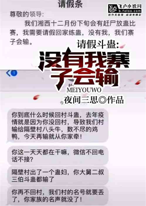 “你到底什么时候赶尸斗蛊,就是因为你三年没回村,导致我们村输给隔壁村八头牛,数不尽的鸡鸭,今年再输就从你家牵。”“你这一天天的都在干嘛,微信不会电话不接。”“隔壁村出了一个蛊妇,你大舅二叔三伯连续三年赶尸斗蛊都输了。”“你再不回村,我们村的...